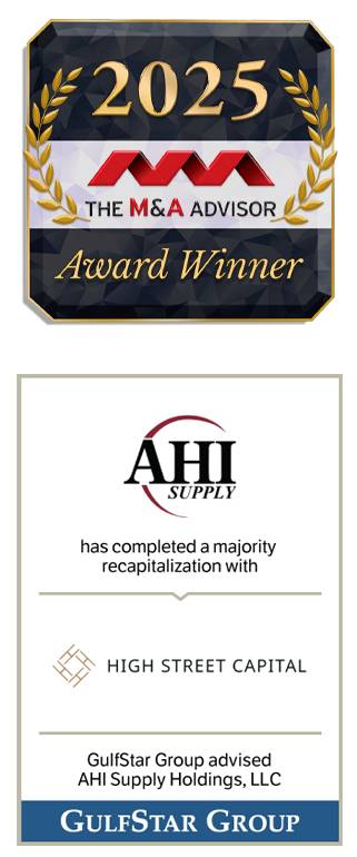HOUSTON, December 2, 2025 – The M&A Advisor has named GulfStar Group (GulfStar) the winner of Materials Deal of the Year (under $100 million) at the 24th Annual M&A Advisor Awards Gala for its role in the acquisition of AHI Supply by High Street Capital. The event took place on Wednesday, November 19, at the New York Athletic Club.